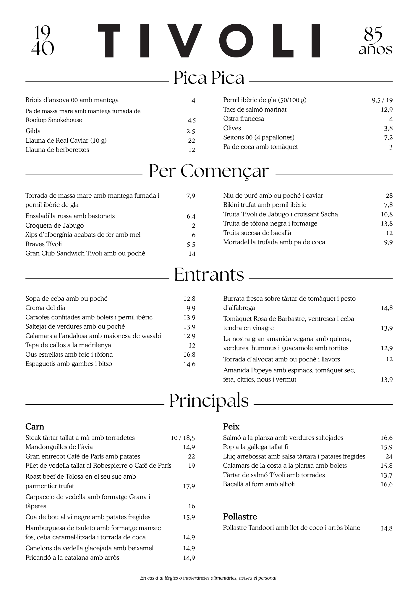 Desde hace 80 años, Tívoli 1940 nace en un local de los que hacen bonitos a ciudad de Barcelona, hacen que tenga alma, que tenga historia.